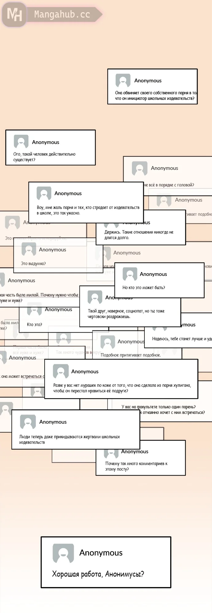 Оскорблять пользователей сайта или любого ресурса (включая страницы социальных сетей) под управлением Мангахаба.