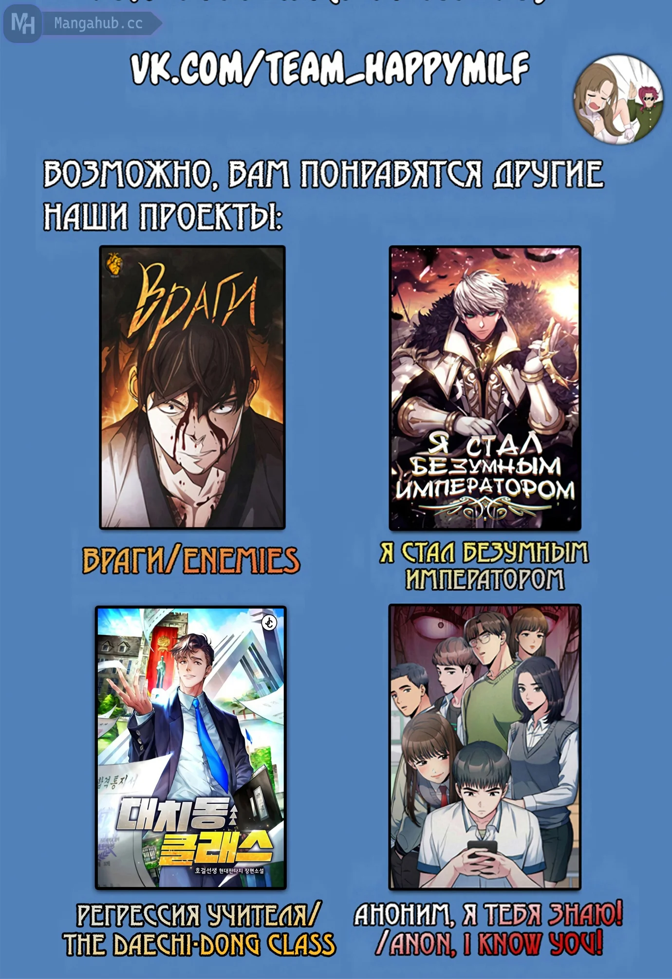 Оскорблять пользователей сайта или любого ресурса (включая страницы социальных сетей) под управлением Мангахаба.