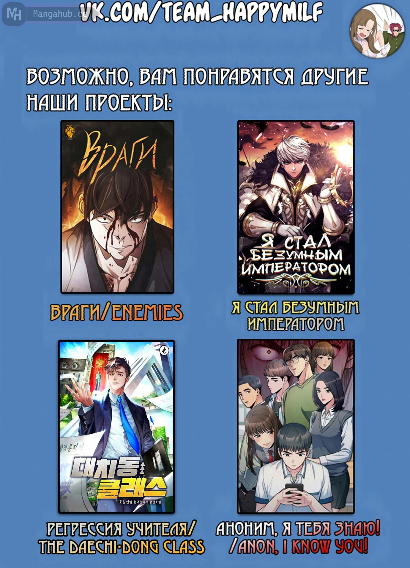 Оскорблять пользователей сайта или любого ресурса (включая страницы социальных сетей) под управлением Мангахаба.