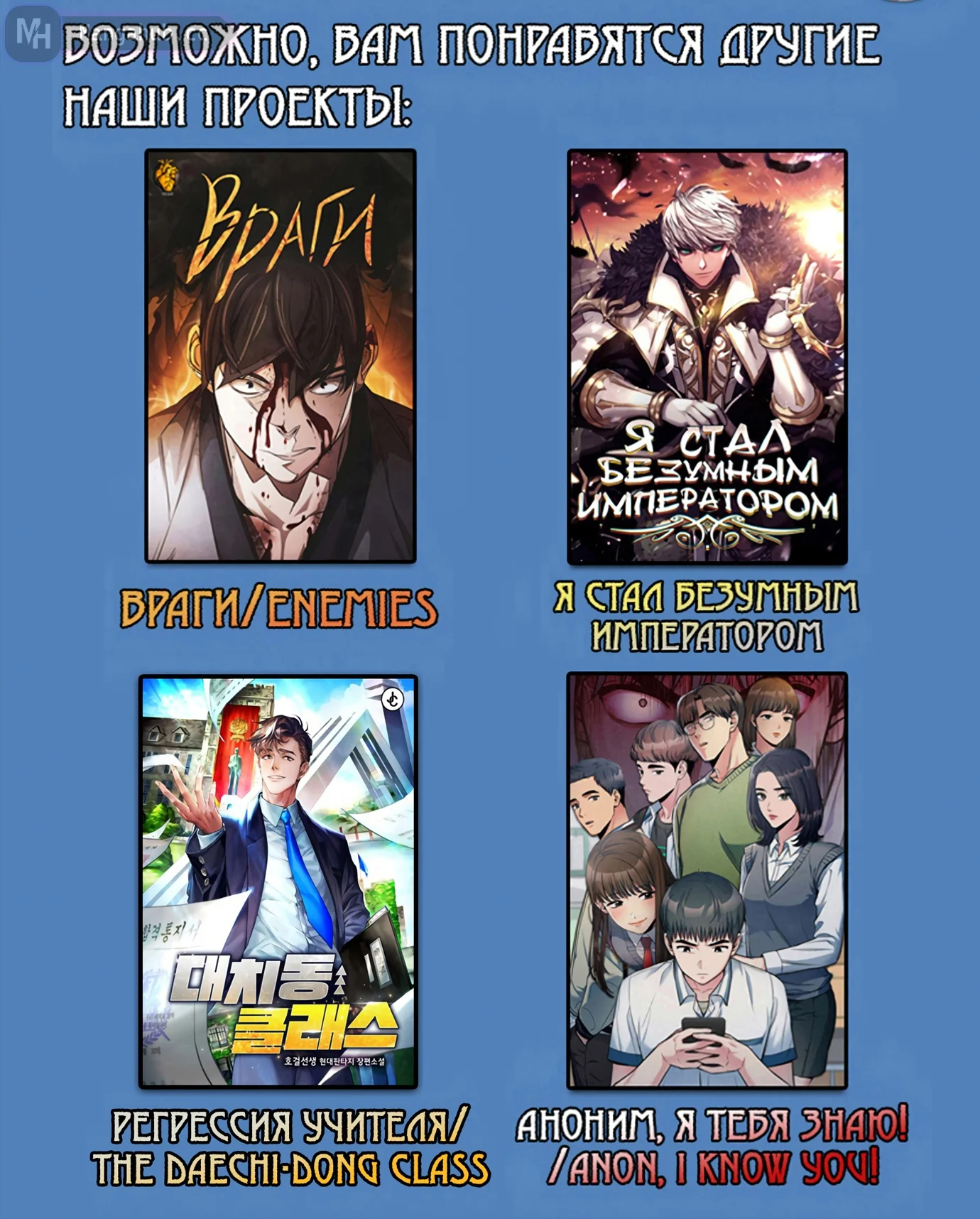 Оскорблять пользователей сайта или любого ресурса (включая страницы социальных сетей) под управлением Мангахаба.