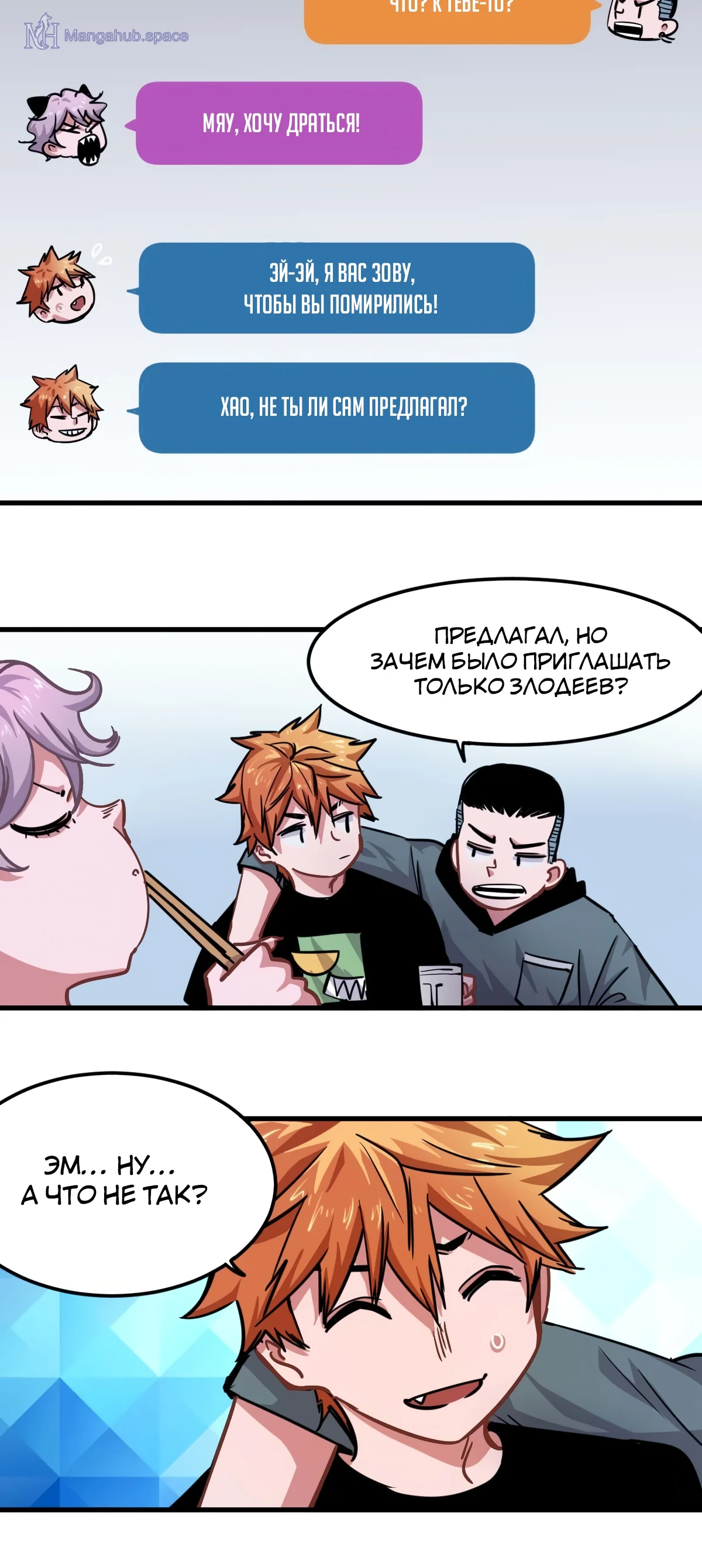 Оскорблять пользователей сайта или любого ресурса (включая страницы социальных сетей) под управлением Мангахаба.